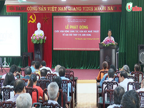 Cuộc vận động “Sáng tác văn học, nghệ thuật về Đại đội TNXP 915 Anh hùng” do Hội Văn học nghệ thuật tỉnh phát động vào sáng ngày 14-4. Đồng chí Trịnh Việt Hùng, Phó Chủ tịch UBND tỉnh, Trưởng Ban Chỉ đạo việc trùng tu, tôn tạo Khu di tích lịch sử Quốc gia, Địa điểm lưu niệm các TNXP Đại đội 915 hy sinh tại Ga Lưu Xá (phường Gia Sàng, T.P Thái Nguyên) cùng đông đảo các văn nghệ sĩ trên địa bàn tỉnh.
