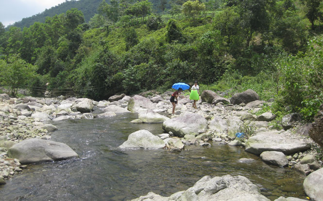 Cứ mặc nhiên thưởng thức không khí trong lành. Cứ tha hồ tưởng tượng, khám phá, mẹ tự nhiên hết sức tài tình, từ 230 triệu năm trước, với những đợt phun trào núi lửa, dung nham chồng lên dung nham, đợt đợt chất chồng dựng thành núi Tam Đảo. Rồi lặng lẽ chắt gạn nên bao dòng nước nuôi sống những cánh đồng nó đi qua. Suối cửa Tử là một trong hàng trăm dòng nước miệt mài chảy ra từ lòng núi Tam Đảo, chảy miên man qua các khu đồng thuộc xã Hoàng Nông. Bốn mùa, dòng nước chảy miên man, và trên dọc dài của suối có những bãi đá ngầm, đá lớn, nhỏ chồng lên nhau như xếp, đá tròn như người gọt, tạo cảnh trước mắt người. Mỗi năm, dòng Cửa Tử có hàng vạn lượt người, có cả khách nước ngoài đến đây vãn cảnh thiên nhiên. Nhiều du khách cắm trại ngủ qua đêm để nghe tiếng nước chảy, nghe tiếng gió rừng thì thầm về câu chuyện tình thủy chung của lứa đôi. Ông Triệu Văn Tuấn, một người dân bản địa trong lúc đưa tôi đi khám phá dòng Cửa Tử kể: Dòng nước này linh nghiệm lắm, nhiều đôi trai gái về đây, chân đứng dưới dòng nước, ngước mắt nhìn đỉnh Thiên Thị, nắm lấy tay nhau thề hẹn thì suốt đời thủy chung, viên mãn.