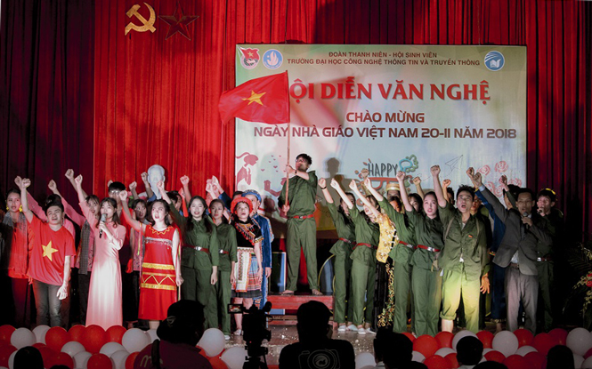 Chào mừng ngày Nhà giáo Việt Nam 20-11, tối qua (16-11), Đoàn Thanh niên - Hội Sinh viên Trường Đại học Công nghệ Thông tin và Truyền thông (ĐHTN) đã tổ chức Hội diễn văn nghệ với chủ đề ngợi ca ngợi Đảng, Bác Hồ, ca ngợi quê hương đất nước.