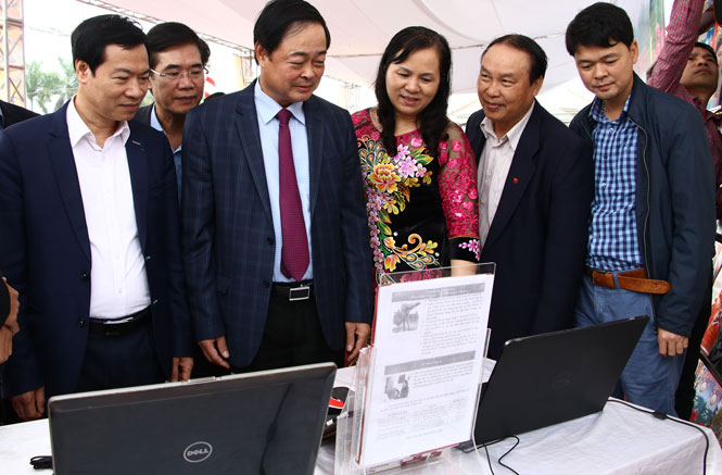 Các đồng chí lãnh đạo tỉnh thăm quan gian trưng bày của Báo Thái Nguyên.