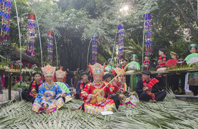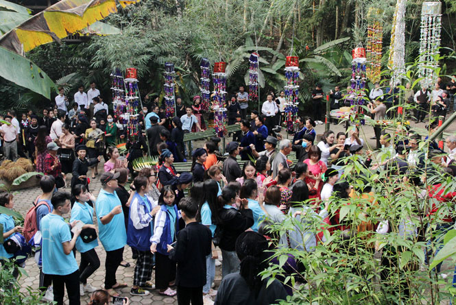 Làn điệu Then cổ của người Tày trong Làng nhà sàn sinh thái Thái Hải cầu an, cầu phúc cho tất cả các thành viên trong làng và đông đảo người dân dự Tết cơm mới.
