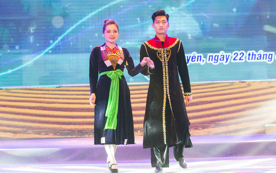Những trang phục rực rỡ sắc màu của các dân tộc vùng Việt Bắc được thể hiện qua phần trình diễn của các nghệ sĩ, diễn viên đoàn nghệ thuật chuyên nghiệp các tỉnh.