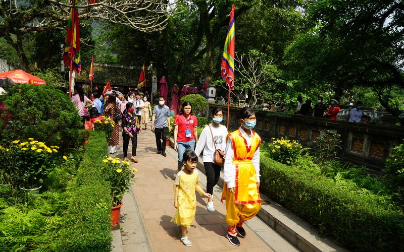 Khách du lịch thăm quan các di tích lịch sử văn hóa ở Cố đô Hoa Lư.