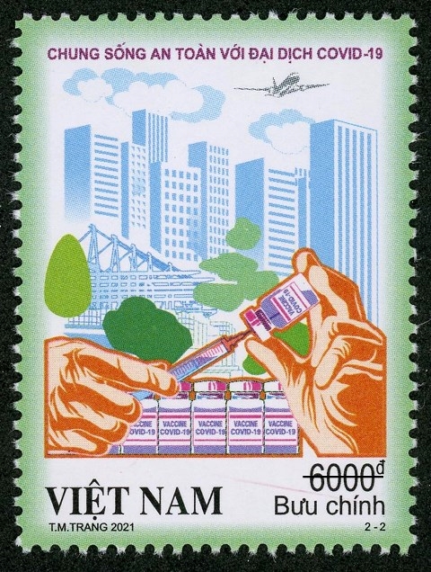 Bộ tem “Chung sống an toàn với đại dịch COVID-19” có khuôn khổ 32 x 43(mm) do họa sĩ Tô Minh Trang (Tổng công ty Bưu điện Việt Nam) thiết kế. Bộ tem được cung ứng tại 63 Bưu điện tỉnh, thành phố và được lưu hành rộng rãi tại 192 quốc gia và vùng lãnh thổ thuộc Tổ chức Liên minh Bưu chính thế giới. Bên cạnh việc phát hành bộ tem, Bưu điện Việt Nam cũng đưa ra các sản phẩm cùng chủ đề: phong bì FDC, bưu thiếp, tem cá nhân....