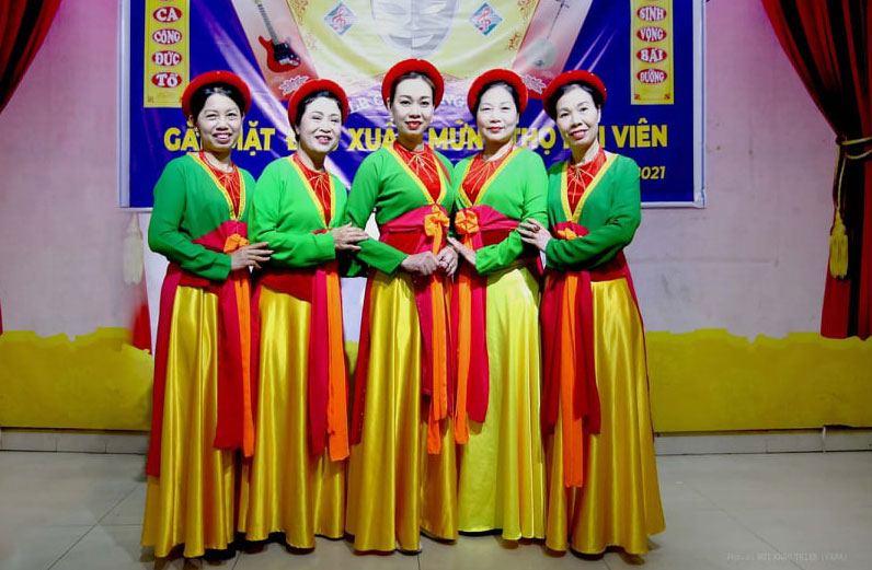 Tìm hiểu thêm về công việc “chắp cánh” cho phong trào văn nghệ quần chúng này, tôi choáng ngợp trước “thế giới” của quần áo biểu diễn. Có thể chia thành các nhóm: Trang phục theo nghề như công nhân, bộ đội, công an, nông dân, trí thức…; trang phục dân tộc như Mông, Dao, Tày, Thái…; trang phục ba miền như áo dài, áo yếm, bà ba; trang phục theo điệu múa như dân vũ, đồng dao, múa sen; trang phục cung đình như quần áo vua, quan, hoàng hậu…