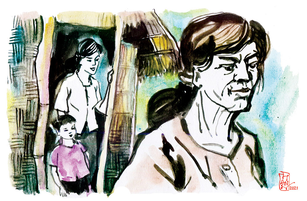 Bà Mẩn chưa già, năm nay mới 65 tuổi, nhưng bà đã có cháu ngoại nên bà quyết định làm đơn vào Hội Người cao tuổi. Bà Mẩn thương người, thương cả loài vật, thậm chí thương cả cỏ cây, hoa lá. Thấy ai có hoàn cảnh khó khăn là bà nhăm nhăm hỏi han để giúp đỡ. Bà không phải là người giầu có của cải, nhưng bà giầu tình thương. Những thứ bà giúp đỡ người khó khăn cơ nhỡ hoặc gặp thiên tai hoạn nạn thường chỉ là vài chục nghìn đồng, khi nào mới lĩnh lương hưu thì bà mạnh tay giúp nhiều hơn hai ba trăm nghìn. Bà bảo: "Một nắm khi đói, bằng một gói khi no", cứ giúp người ta, đỡ được chút nào hay chút ấy.