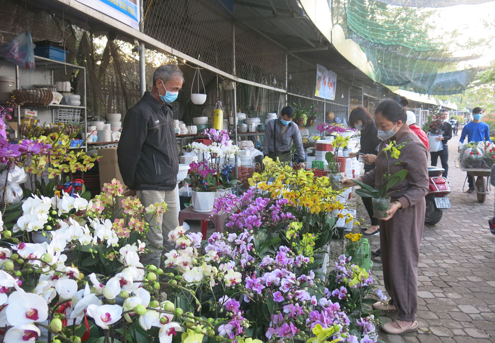 Chợ hoa càng những ngày áp Tết càng trở nên nhộn nhịp hơn. Chợ hoa năm nay càng đặc biệt hơn bởi diễn ra trong thời điểm dịch COVID-19 đang có những diễn biến phức tạp, thành phố xuất hiện nhiều ca cộng đồng chưa rõ nguồn lây. Thích ứng linh hoạt nhưng không có nghĩa là chủ quan, lơ là, bởi thế công tác phòng, chống dịch tại các chợ cũng được cả người mua và bán thực hiện tương đối nghiêm túc theo chỉ đạo của chính quyền địa phương. Người bán hàng cơ bản đều đã tiêm 2 mũi vắc- xin phòng COVID-19, cứ ba ngày họ lại thực hiện test nhanh COVID-19 một lần.