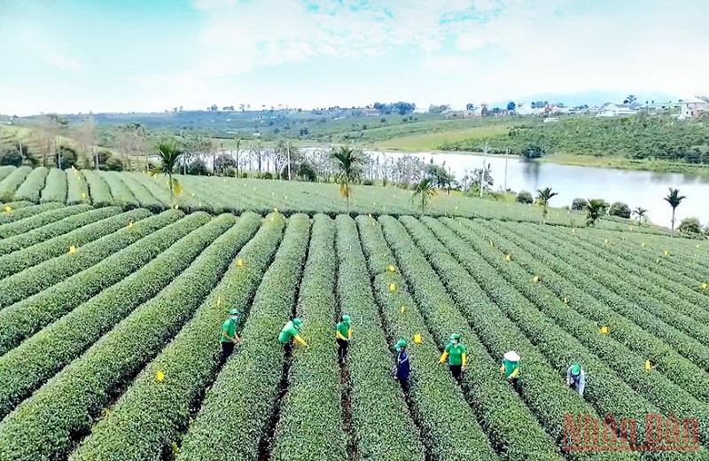 Trên cánh đồng chè tại T.P Bảo Lộc, tỉnh Lâm Đồng.
