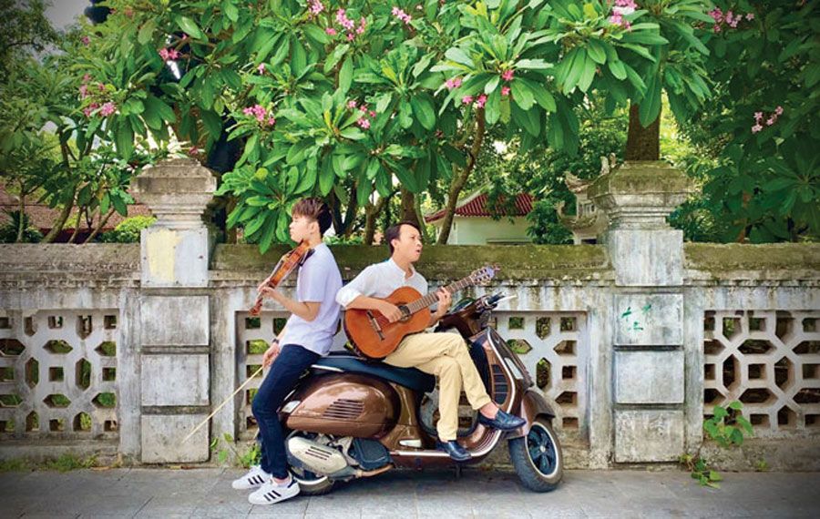 Nhạc sĩ Trần Quang Sơn (chơi guitar) thực hiện ca khúc “Sài Gòn sẽ vui”.