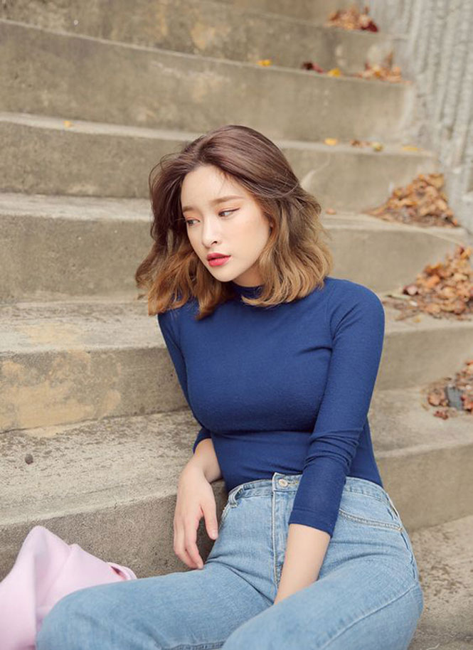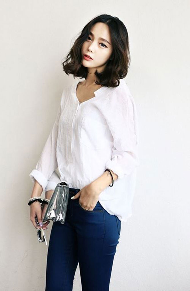 Nếu có tỷ lệ khuôn mặt cân đối, hãy tạo kiểu tóc rẽ ngôi giữa, uốn xoăn nhẹ và nhuộm màu sáng.