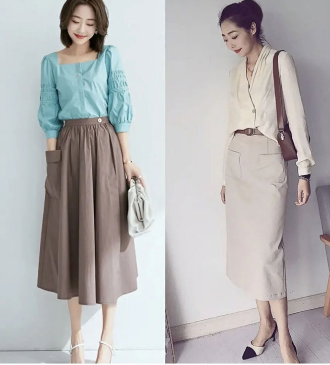 Việc phối áo sơ mi và chân váy dường như rất phù hợp với mùa hè, nhất là trong môi trường công sở. Vừa ghi thêm điểm và tôn lên style ăn mặc của chị em văn phòng.