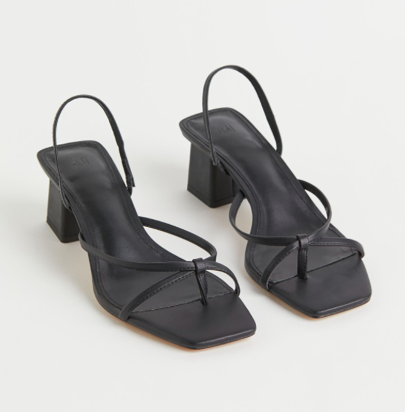 Sandals giả da với quai mảnh đan chéo ôm lấy bàn chân, gót vuông của H&M.