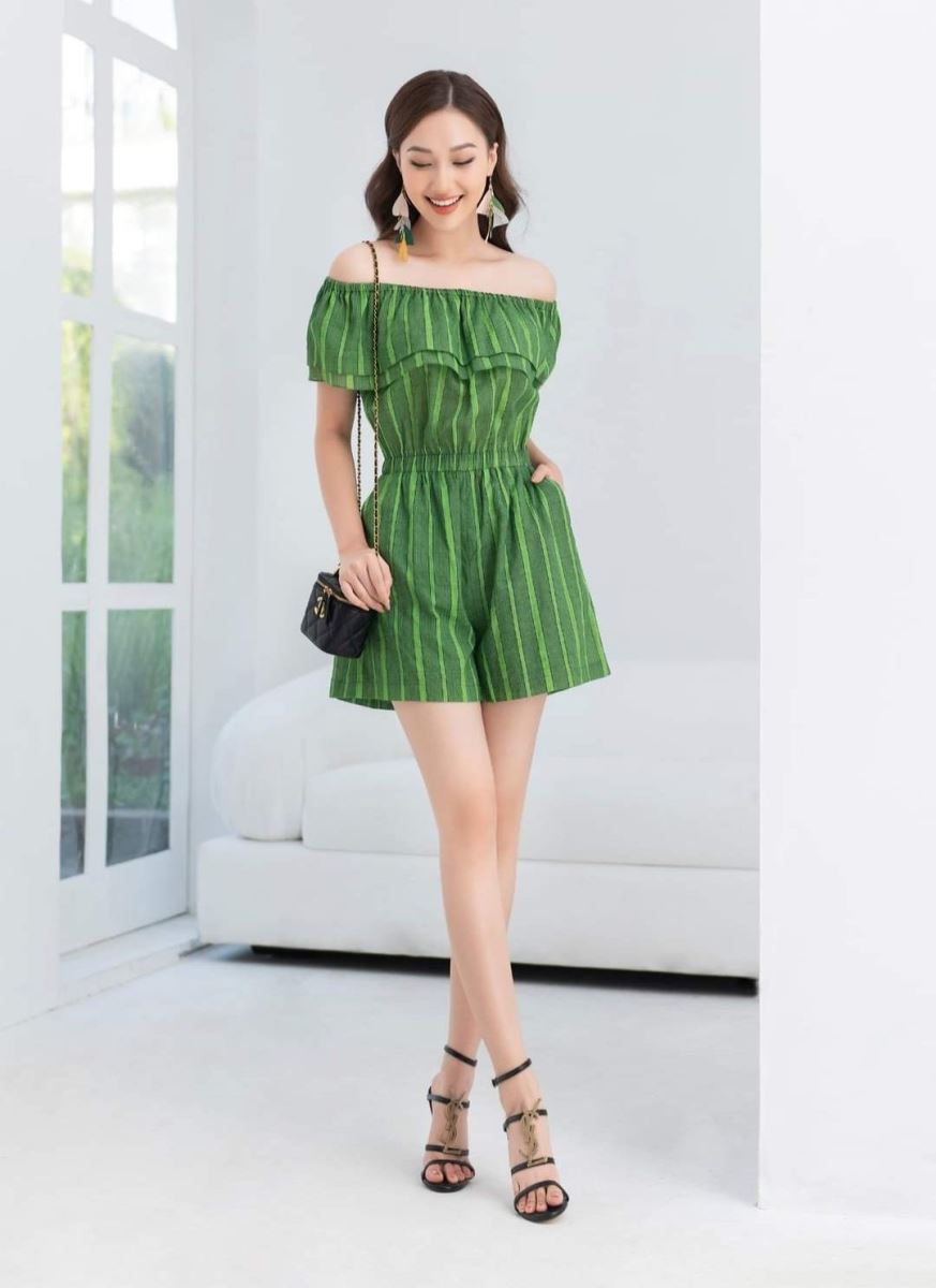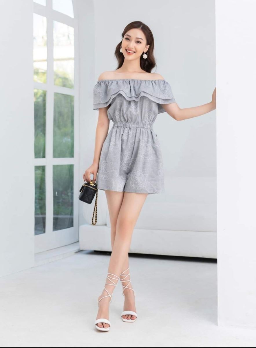 Playsuit (jumpsuit shorts) với thiết kế trễ vai phù hợp với style mùa hè lại vô cùng quyến rũ gợi cảm.