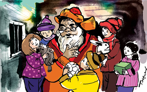 - Từ trước đến giờ tao cứ tưởng ông già Nô-en chỉ có trong truyền thuyết, hóa ra ông già Nô-en có thật đấy chúng mày ạ.