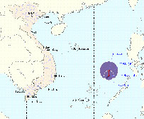 Dự báo trong 24 giờ tới, áp thấp nhiệt đới di chuyển chậm theo hướng giữa Bắc và Bắc Đông Bắc, mỗi giờ đi được khoảng 5 – 10 km và có khả năng mạnh lên thành bão. Đến 1 giờ ngày 16/5, vị trí tâm bão ở vào khoảng 14,0 độ vĩ bắc; 117,6 độ kinh đông. Tính từ tâm bão, vùng gió mạnh nguy hiểm từ cấp 6 trở lên có bán kính khoảng 200 km.