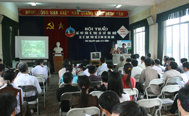 Ngày 8-5, Trung tâm Khuyến nông Thái Nguyên kết hợp với Công ty TNHH Hoàng Phương I tổ chức hội thảo “Giải pháp đồng bộ trong sản xuất nông nghiệp khi sử dụng phân hữu cơ sinh học Sao Xanh”cho cán bộ trạm khuyến nông các huyện, thành, thị và những nông dân có kinh nghiệm sản xuất rau, chè sạch (Ảnh)