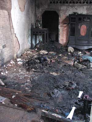 Tại hiện trường vụ án mạng hôm nay, nơi phát hiện 9 xác chết cháy đen vẫn đặc mùi khét lẹt. Căn phòng rộng khoảng 25 m2 với một cửa chính, một cửa hậu và một cửa sổ. Không có tài sản nào trị giá, ngoài một tủ thờ, một chiếc bàn, dưới sàn là tấm nệm, chiếu, nhiều quần áo bị cháy rụi. Từng mảng tường lớn bị bong tróc.