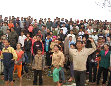 Cách bờ 20 mét , nhiều người chen lấn sô đẩy nhau để lên bờ sớm khiến nước tràn vào mũi. Khoảng 80 người bấu víu trên con thuyền chìm dần.