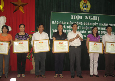 Sáng 14/7, Ban Thường vụ Liên đoàn Lao động tỉnh đã tổ chức hội nghị cán bộ và báo cáo viên công đoàn quý II, tổng kết, trao giải cuộc thi tìm hiểu "Công đoàn Việt Nam, 80 năm - một chặng đường lịch sử" (ảnh). Đồng chí Lê Quang Dực, Trưởng ban Tuyên giáo Tỉnh uỷ đã đến dự.