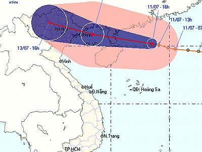 Trung tâm Dự báo khí tượng thuỷ văn Trung ương tính toán, khoảng trưa và chiều ngày 12/7 vùng tâm bão sẽ đi vào địa phận các tỉnh Quảng Ninh - Nam Định. Đến 22 giờ ngày 12/7, vị trí tâm bão ở vào khoảng 20,7 độ Vĩ Bắc; 107,3 độ Kinh Đông. Sức gió mạnh nhất vùng gần tâm bão mạnh cấp 8 (tức là từ 62 đến 74 km một giờ), giật cấp 9, cấp 10.