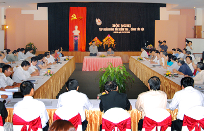 Ngày 24/10, tại thị xã Cửa Lò, tỉnh Nghệ An, Hội Nhà báo Việt Nam (HNBVN) đã tổ chức hội nghị tập huấn về công tác kiểm tra, công tác Hội (ảnh). Tham dự có trên 100 đại biểu là lãnh đạo, trưởng ban Kiểm tra, trưởng ban công tác Hội thuộc các chi hội, liên chi hội nhà báo các tỉnh, thành phố trong cả nước. Đồng chí Lê Quốc Trung, Phó Chủ tịch Thường trực Hội Nhà báo chủ trì hội nghị.