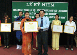 Nhân kỷ niệm 79 năm Ngày thành lập Hội LHPN Việt Nam (20/10), sáng 15/10, Ban Thường vụ Liên đoàn Lao động tỉnh đã tổ chức tổng kết, trao giải cuộc thi tìm hiểu "Tư tưởng và tấm gương đạo đức Hồ Chí Minh" trong nữ công nhân viên chức lao động (ảnh).