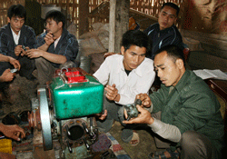 Theo chân các cán bộ Đoàn thanh niên huyện Võ Nhai, chúng tôi đến thăm lớp Dạy nghề diezel tại xã Cúc Đường. Dưới ngôi nhà sàn của ông Lường Văn Phán ở xóm Tân Sơn, một lớp học nghề lưu động đã được khai giảng từ cách đây hơn 3 tháng. Toàn bộ những nông cụ, vật dụng sinh hoạt của gia đình ông Phán được xếp gọn vào một góc nhà để nhường chỗ cho lớp học sửa chữa động cơ diezel. 2 chiếc động cơ đặt ngay ngắn giữa nhà cùng với hàng chục các dụng cụ tháo lắp là các thiết bị chính sử dụng cho công tác học tập. Tham gia lớp học có 30 học viên là thanh niên dân tộc thiểu số của xã Cúc Đường. Nội dung chính của khóa học là cung cấp các kiến thức cơ bản về động cơ Diezel, các phương pháp cơ bản bảo dưỡng, sửa chữa động cơ Diezel. Để từ đó các học viên có thể tự mình bảo dưỡng, sửa chữa những hư hỏng xảy ra trong quá trình sử dụng động cơ để phát triển kinh tế. Mặc dù đã thi hết khóa học nhưng các trang thiết bị của lớp vẫn được giữ lại để cho các học viên trao đổi kinh nghiệm trước khi bế giảng. Trao đổi với chúng tôi, học viên Lý Quang Sáng, 36 tuổi chia sẻ, anh đã mua máy cày được 3 năm và dùng vào công việc cày ruộng, kéo củi, xẻ gỗ... Tuy nhiên, trước đây anh không biết bảo dưỡng nên máy đã nhiều lần bị hỏng hóc. Mỗi khi thiết bị hỏng, anh Sáng lại phải chở máy ra tận La Hiên để sửa với chi phí khá cao so với thu nhập của nhà nông. Khi biết có lớp học anh đã chủ động đăng ký để có thể tự mình bảo dưỡng, sửa chữa máy của gia đình. Anh sáng cho biết: “Giờ tôi còn có thể giúp đỡ các hộ khác sửa chữa, bảo dưỡng máy”.