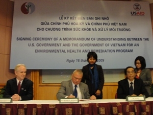 Lễ Ký kết Bản ghi nhớ Chương trình phục hồi môi trường và sức khỏe giữa Đại sứ quán Hoa Kỳ tại Việt Nam và Văn phòng 33 thuộc Bộ Tài nguyên và Môi trường, cơ quan điều phối của Chính phủ Việt Nam về vấn đề chất da cam/dioxin diễn ra ngày 16/12, tại Hà Nội.