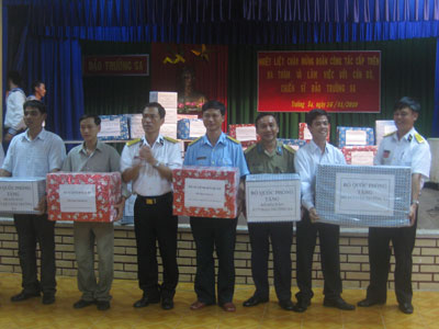 Ngày 16/1, tại thị trấn Trường Sa, huyện đảo Trường Sa, tỉnh Khánh Hòa, Đoàn công tác vùng D Hải quân tổ chức tặng quà và chúc Tết nhân dân, cán bộ, chiến sỹ tại các đảo thuộc quần đảo Trường Sa.