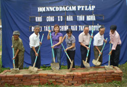Ngày 24/5, Báo Thái Nguyên phối hợp với Hội Nạn nhân chất độc da cam Phường Tân Lập (T.P Thái Nguyên) khởi công xây dựng nhà tình nghĩa cho bà Lê Thị Nhung, Tổ dân phố số 3, là mẹ của em Lăng Văn Huấn, nạn nhân chất độc da cam (ảnh).