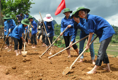 Sinh viên Dương Thị Hồng chia sẻ: "Nhà em ở Hà Nội, chưa phải lao động chân tay thế này bao giờ. Ban đầu bố mẹ em nhất định không cho đi tình nguyện vì sợ con gái đi xa vất vả, lại thiếu thốn đủ thứ, nhưng em cứ nài nỉ mãi, rồi giải thích thêm cho bố mẹ nên mới được có mặt ở đây". Trực tiếp tham gia một buổi lao động tình nguyện với sinh viên, chúng tôi mới thấy hết sự nhiệt tình và nghiêm túc trong công việc của các bạn trẻ. Buổi đầu tiên, đoàn tổ chức dọn rác thải tại đập tràn thôn Nà Lá. Phan Thị Kim Nhung, sinh viên lớp Thú y K40A cho biết: "Sau mấy trận mưa lớn, lượng rác đọng lại ở cống rất nhiều, bọn em bì bõm dưới nước dọn từ sáng đến trưa mà vẫn chưa xong. Sau khi bàn bạc, mọi người quyết định làm cố cho xong công việc. Do vậy, mãi 1 giờ 30 phút chiều chúng em mới nghỉ, ăn cơm xong đã quá 2 giờ chiều, ai cũng mệt nhoài". Trong các ngày tiếp theo, đoàn giúp đỡ san đất cho gia đình anh thương binh Hoàng Văn Túc, ở xóm Bản Noóng và gặt lúa cho một số gia đình chính sách. Mồ hôi nhễ nhại, Nguyễn Nam Long, sinh viên lớp Thú y K41 phát biểu: "Mệt nhưng mà vui, mọi người ai cũng hăng hái lắm".