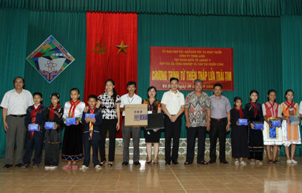 Đây là một trong những hoạt động trong chương trình tặng quà từ thiện với chủ đề "Thắp lửa trái tim" do Báo Dân tộc và Phát triển cùng các tổ chức đơn vị, doanh nghiệp, doanh nhân có tấm lòng vàng chung sức dành tặng cho người nghèo 4 tỉnh: Thái Nguyên, Bắc Kạn, Cao Bằng, Tuyên Quang.