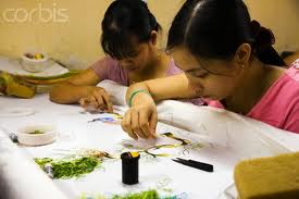 Trong vòng 4 tháng, 30 học viên được các giảng viên hướng dẫn cách sử dụng các màu chỉ; các loại hình thêu và kỹ thuật thêu; các công đoạn như xem mẫu, căng nền, sang kiểu, chọn chỉ màu, thêu đường viền, đường lượn... Sau khi học lý thuyết, các học viên được thực hành và làm các sản phẩm được giao.
