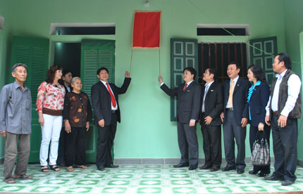 Các đại biểu đã đến thăm và giật băng khánh thành tại 2 gia đình ở xóm Trung Việt, thị trấn Chợ Chu.