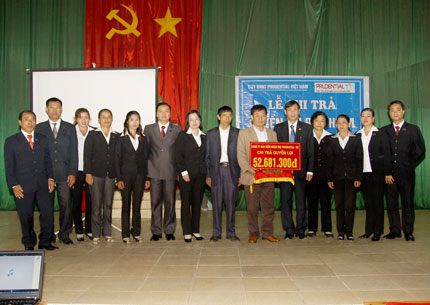 Tại buổi Tọa đàm, Đại diện Công ty Prudential đã trao số tiền trên 52 triệu đồng cho gia đình chị Đồng Thị Liễu (ảnh), trú tại xóm Mỏ Chè, xã Tân Quang (T.X Sông Công), là đại diện quyền lợi của khách hàng Vũ Tiến Anh tham gia loại hình bảo hiểm Phú - Thành tài với Công ty từ năm 2007 và vừa qua đời hồi tháng 8-2010.
