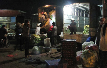 Có tự mình chứng kiến mới tường tận sự tần tảo và nỗi vất vả của những người dân mưu sinh ở đây. Khi xe ô tô chở hàng vừa đỗ, những tiểu thương đang ngồi chờ lập tức đứng dậy nhảy lên thùng xe lôi những sọt hàng về phía mình. Khách mua hàng hầu hết đã quen mặt nhau, thậm chí họ còn là chị em trong một nhà nhưng vẫn phải tranh giành vì để chọn được sọt rau, quả ngon. Khuôn mặt những tiểu thương lấm lem mồ hôi. Giữa nhiệt độ trời đêm Đông dưới 15 độ mà những tiểu thương này phải cởi bớt áo khoác cho đỡ nóng.