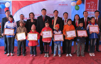 Nhân dịp này, Công ty Prudential đã trao 8 suất học bổng, mỗi suất trị giá 500 nghìn đồng cho các học sinh nghèo vượt khó học giỏi của huyện Phú Bình (ảnh).