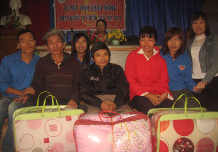 Nhân dịp này, Hội Người khuyết tật phối hợp với Câu lạc bộ Ánh sáng tương lai tặng 10 chăn ấm, áo ấm và quà cho những gia đình hội viên khuyết tật nghèo (ảnh).