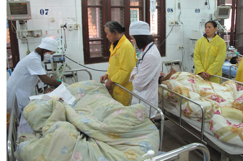 Có mặt tại Khoa Hồi sức cấp cứu (Bệnh viện đa khoa Trung ương Thái Nguyên) khi chỉ còn hơn 2 giờ đồng hồ nữa là đến giao thừa, chúng tôi cảm nhận được không khí làm việc khẩn trương của các thầy thuốc của khoa. Các bệnh nhân của Khoa mà phải ở lại đón Tết trong bệnh viện đều là bệnh nhân nặng, duy trì sự sống bằng hỗ trợ của máy móc, vì thế trong dịp này lãnh đạo Bệnh viện và các cơ quan, đơn vị trên địa bàn tỉnh rất quan tâm, thăm hỏi, tặng quà để động viên bệnh nhân và người nhà của họ yên tâm điều trị và chúc họ có niềm tin trong năm mới. Trao đổi với chúng tôi, đồng chí Dương Hồng Thái, Phó Giám đốc Bệnh viện cho biết: Đến 18 giờ chiều 30 Tết, Bệnh viện còn 236 bệnh nhân đón Tết trong Bệnh viện nhưng đến thời điểm này (22 giờ) thì con số đó đã thay đổi, bởi ngoài những bệnh nhân tai nạn giao thông thì năm nay có nhiều trường hợp nhập viện khá đặc biệt như bị ngã do treo cờ, chở cây cảnh bị đổ ngã... Năm nay, chúng tôi huy động mỗi kíp trực có 128 người/ngày bắt đầu từ ngày 30 tết đến hết mùng 4 tháng Giêng, 30 bác sĩ trực thường trú, đội cấp cứu cơ động khi có trường hợp đặc biệt cần huy động đột xuất... Ngoài ra, Bệnh viện còn chuẩn bị thuốc men, thiết bị cần thiết để sẵn sàng cấp cứu kịp thời người bệnh. Chúng tôi quán triệt những thầy thuốc trực Tết phát huy trách nhiệm, tinh thần của những “chiến sĩ áo trắng”, hết lòng phục vụ, chăm sóc sức khỏe cho nhân dân, để người dân tin tưởng gửi gắm tính mạng của mình, yên tâm điều trị và mong sớm được bình phục để trở về bên người thân...