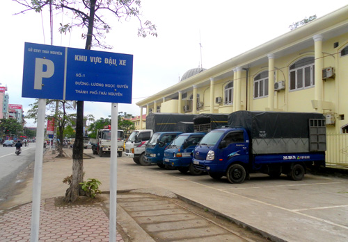Đường Bến Tượng và đường Phủ Liễn vào mỗi buổi sáng, một đoạn dài cả trăm mét thực sự đã biến thành bãi đỗ xe, vỉa hè và cả lòng đường Hoàng Văn Thụ, Lương Ngọc Quyến, Bắc Kạn… cũng thường xuyên bị xâm phạm. Giải quyết trước mắt tình trạng này, bên cạnh việc tập trung cải thiện hạ tầng giao thông, T.P Thái Nguyên hằng năm đều cấp phép cho các cơ quan có nhu cầu được sử dụng một phần vỉa hè làm điểm đỗ xe, chỉ đạo các lực lượng chức năng tăng cường tuần tra, phát hiện và xử phạt những hành vi đỗ xe trái quy định. Trong năm 2011, Đội Quản lý trật tự xây dựng và Giao thông phối hợp với Đội Cảnh sát Giao thông, Công an thành phố đã thu giữ 330 bộ giấy tờ ô tô, 13 biển đăng ký ô tô vì vi phạm quy định dừng, đỗ. Con số trên chưa thể phản ánh hết số vụ vi phạm, bởi tình trạng này quá phổ biến nên trừ những trường hợp vi phạm điển hình, Đội chủ yếu áp dụng hình thức tuyên truyền, nhắc nhở.