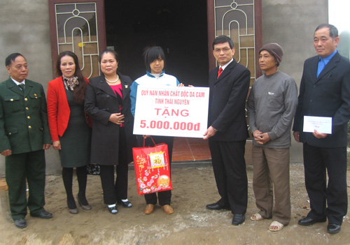 Tại huyện Đại Từ, bà Lưu Thị Tuyết đã trao 10 suất quà mỗi suất trị giá 300.000 đồng cho 10 gia đình nạn nhân. Tại xã Tân Cương bà Lưu Thị Lịch đã trao tiền hỗ trợ cho 10 gia đình mỗi gia đình 1 triệu đồng và một suất quà Tết trị giá 300.000 đồng cho các gia đình nạn nhân chất độc da cam. Bà Đào Thị Hồng đã trao quà Tết và áo ấm cho gia đình nạn nhân chất độc da cam Nguyễn Văn Thắng. Thường trực Hội Nạn nhân chất độc da cam tỉnh trao 5 triệu đồng hỗ trợ làm nhà cho nạn nhân chất độc da cam Nguyễn Thị Hoài ở Núi Guộc, T.P Thái Nguyên (ảnh).