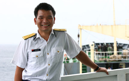 Biết ở đây có đồng hương người Thái Nguyên, tôi sùng sục đi tìm, gặp mặt đồng hương mừng quá, thật không ngờ ở nơi hải đảo tiền tiêu của Tổ quốc, tôi lại có cuộc trò chuyện thú vị như vậy. Tên anh là Vũ Tiến Kiên, cấp bậc thiếu úy chuyên nghiệp, nhà có 4 anh chị em (3 trai, 1 gái), quê quán ở xóm Đồng Tâm, xã Tức Tranh, huyện Phú Lương. Chắc là do được rèn luyện trong môi trường sóng gió khắc nghiệt nên nhìn Kiên già dặn hơn so với tuổi 27 của mình, anh tâm sự: Tôi nhập ngũ năm 2006, học và làm công tác báo vụ, sau đó tôi được cử đi học tại Trường Trung cấp kỹ thuật Hải quân từ năm 2007 đến 2009, ra trường tôi nhận nhiệm vụ lái tàu biển tại Lữ đoàn 170 (Vùng I Hải quân), đến tháng 10/2010 tôi xin được ra đảo Trường Sa để cống hiến sức trẻ của mình cho Tổ quốc. Kiên tâm niệm, nơi gian khổ chính là nơi rèn đức, luyện tài của người chiến sĩ, trong gian khó, tình đồng đội đồng chí càng bền chặt, tư tưởng, tính cách của từng cá nhân được bộc lộ, qua đó họ tự đánh giá, rèn luyện và vượt lên chính mình, có đủ bản lĩnh đương đầu với mọi khó khăn, xứng đáng là “Bộ đội cụ Hồ”.