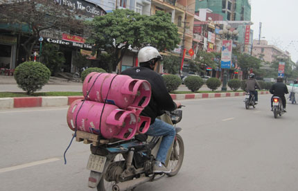 Hiện nay, trên địa bàn tỉnh có khoảng trên 400 đại lý, cửa hàng kinh doanh gas. Qua tìm hiểu thực tế chúng tôi nhận thấy hầu hết việc vận chuyển bình gas từ cửa hàng bán lẻ đến các gia đình sử dụng chủ yếu bằng xe máy mà không tuân thủ quy định về an toàn phòng chống cháy nổ. Những nhân viên của các cửa hàng kinh doanh gas vừa là người vận chuyển, vừa là thợ thay thế bình gas kiêm sửa chữa bếp gas. Không ai biết những nhân viên này có được tập huấn nghiệp vụ hay cấp giấy chứng nhận về phòng cháy, chữa cháy (PCCC) hay không? Trong khi đó, từ ngày 9-11-2009, Chính phủ đã ban hành Nghị định số 104/2009/NĐ-CP quy định danh mục hàng nguy hiểm và vận chuyển hàng nguy hiểm bằng phương tiện giao thông cơ giới đường bộ.