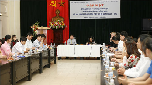 Sáng 5/6, Bộ Giáo dục-Đào tạo (GD-ĐT) phối hợp với Trung ương Đoàn Thanh niên Cộng sản (TNCS) Hồ Chí Minh tổ chức gặp mặt với 120 học sinh đạt giải thưởng Trần Văn Ơn năm học 2011-2012.