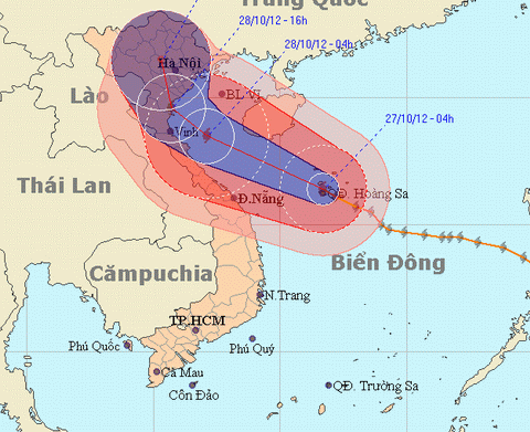 Theo Trung tâm Dự báo Khí tượng Thủy văn Trung ương, hồi 04 giờ ngày 27/10, vị trí tâm bão ở vào khoảng 16,4 độ Vĩ Bắc; 111,7 độ Kinh Đông, trên khu vực quần đảo Hoàng Sa. Sức gió mạnh nhất ở vùng gần tâm bão mạnh cấp 11 (tức là từ 113 đến 117 km một giờ), giật cấp 12, cấp 13.