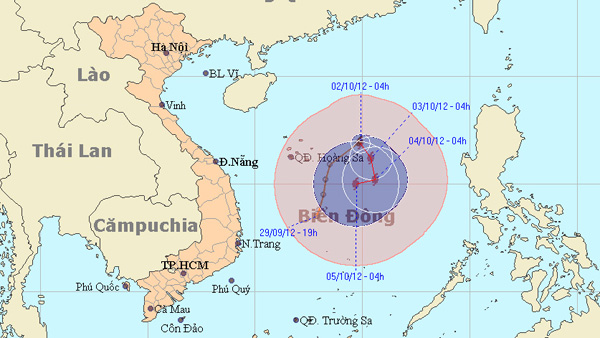 Hồi 1 giờ ngày 2/10, vị trí tâm bão ở vào khoảng 17,0 độ Vĩ Bắc; 114,9 độ Kinh Đông, cách quần đảo Hoàng Sa khoảng 290 km về phía Đông.