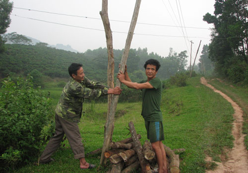 Đưa chúng tôi vào nhà văn hóa của xóm, Trưởng xóm Hoàng Văn Dương cho biết thêm: Xóm Khe Cua 2 có 50 hộ với 196 nhân khẩu. Đường điện này là do bà con trong xóm tự kéo từ năm 1993. Khi đó, trạm điện 8A chưa xây dựng, nhân dân vẫn phải kéo điện từ trạm điện của Nhà máy chè Quân Chu về sử dụng, các cột điện hầu hết làm bằng tre, thân cây, đường dây thì mỗi nhà kéo một đường gồm các loại: dây trần, dây thông tin… hay bất cứ loại dây gì mà người dân có thể tận dụng để đưa điện về. Sau khi trạm điện 8A được xây dựng, do không được đầu tư đường dây hạ thế nên bà con vẫn sử dụng lại đường dây cũ. Trải qua thời gian, các cột điện hiện đã mục nát, gẫy, đổ xiêu vẹo, dây điện thì đan xen như tơ nhện. Do mỗi hộ một đường dây nên người dân phải bỏ ra số tiền tương đối lớn để mua dây, cột kéo điện về nhà. Chi phí kéo điện phụ thuộc vào khoảng cách xa, gần giữa các nhà với trạm điện. Hộ cách trạm điện xa nhất là hơn 3km. Anh Đinh Văn Diễn, nhà ở cuối xóm cho biết: Nhà tôi có 4 nhân khẩu, cuộc sống trông cả vào mấy sào chè, các con lại đang tuổi ăn học nên chi tiêu luôn trong tình trạng thiếu trước hụt sau, thế nhưng tôi vẫn phải cố tích góp để kéo được đường điện về sử dụng. Nhà tôi cách trạm điện 8A tới hơn 3km, tính toán thấy chi phí kéo điện lớn quá nên tôi chỉ dám mua loại dây điện nhỏ, thế nhưng cũng hết tới 4 triệu đồng tiền dây, đấy là chưa kể chi phí mua cột. Kéo được đường điện về đến nhà, nhưng chất lượng điện cũng chẳng bảo đảm phục vụ tốt nhu cầu sinh hoạt và sản xuất của các hộ dân. Máy vò chè hầu như chẳng khi nào dùng được, tôi vẫn phải sao chè bằng tay, buổi tối ti vi cũng không lên hình, quạt thì chạy lờ đờ, đến bóng đèn điện cũng chỉ sáng được như con đom đóm mà thôi, ăn cơm nhiều khi vẫn phải thắp đèn dầu…