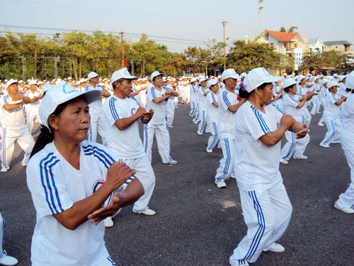 Nhân dịp này, Hội Người cao tuổi thị xã đã tổ chức phần thi bài thể dục dưỡng sinh Kinh lạc thao cho trên 500 hội viên đến từ 10 câu lạc bộ dưỡng sinh Kinh lạc thao.