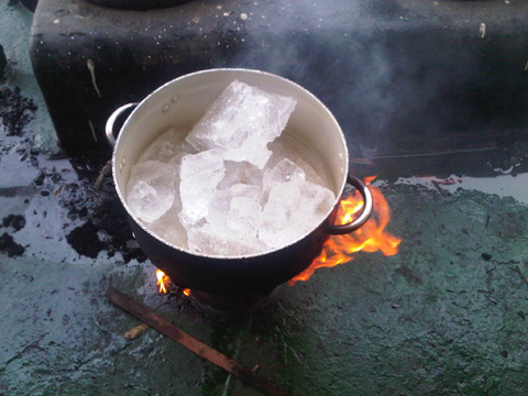 Thời tiết ở Đại Liên những ngày này rét cắt da cắt thịt, nhiệt độ về đêm xuống tới âm 15 độ C và còn tiếp tục giảm xuống. Thủy thủ cho biết tàu rơi vào cảnh không điện, không thực phẩm, thiếu nước ngọt vì toàn bộ nước trên tàu đã bị đóng băng. Để có nước sử dụng, họ phải đi đập từng cục băng rồi đun chảy.