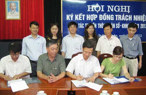 Tại Hội nghị, đại diện các đơn vị và Chi cục DSKHHGĐ đã ký kết hợp đồng trách nhiệm công tác truyền thông DSKHHGĐ với các nội dung: tuyên truyền chiến lược dân số, sức khỏe sinh sản giai đoạn 2011-2020; tuyên truyền Đề án can thiệp giảm thiểu mất cân bằng giới tính khi sinh giai đoạn 2013-2020; truyền thông lợi ích về sàng lọc trước sinh, sàng lọc sơ sinh; tuyên truyền lợi ích khám sức khỏe tiền hôn nhân, chăm sóc sức khỏe vị thành niên và thanh niên….